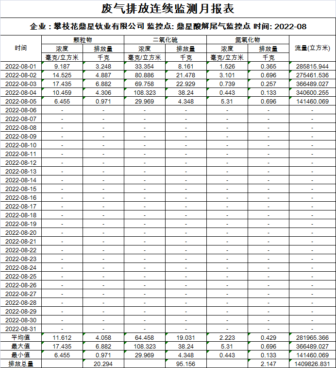 2022年8月酸解废气排放连续监测月报